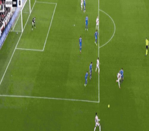下半场开始后,巴列卡诺继续发挥速度方面的特长,拉提乌下底传球,德弗鲁托斯抢到前点,没能命中目标。
